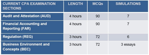 目前,美国注册会计师的考试科目,考试时间和考试形式如下: